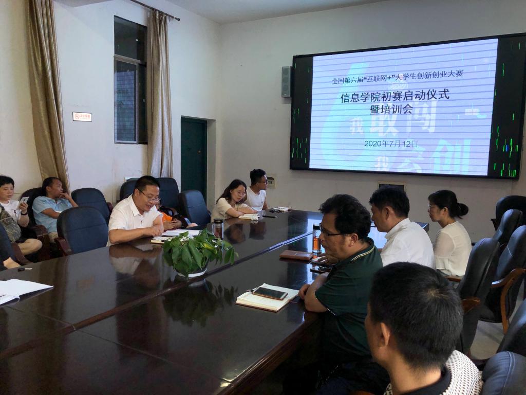为深入推进创新创业教育,7月12日下午在百全楼211会议室,信息学院召开了中国第六届“互联网+”大学生创新创业大赛信息学院初赛启动仪式暨培训会,信息学院全体院领导、创新创业导师团队以及班主任参加了会议。
