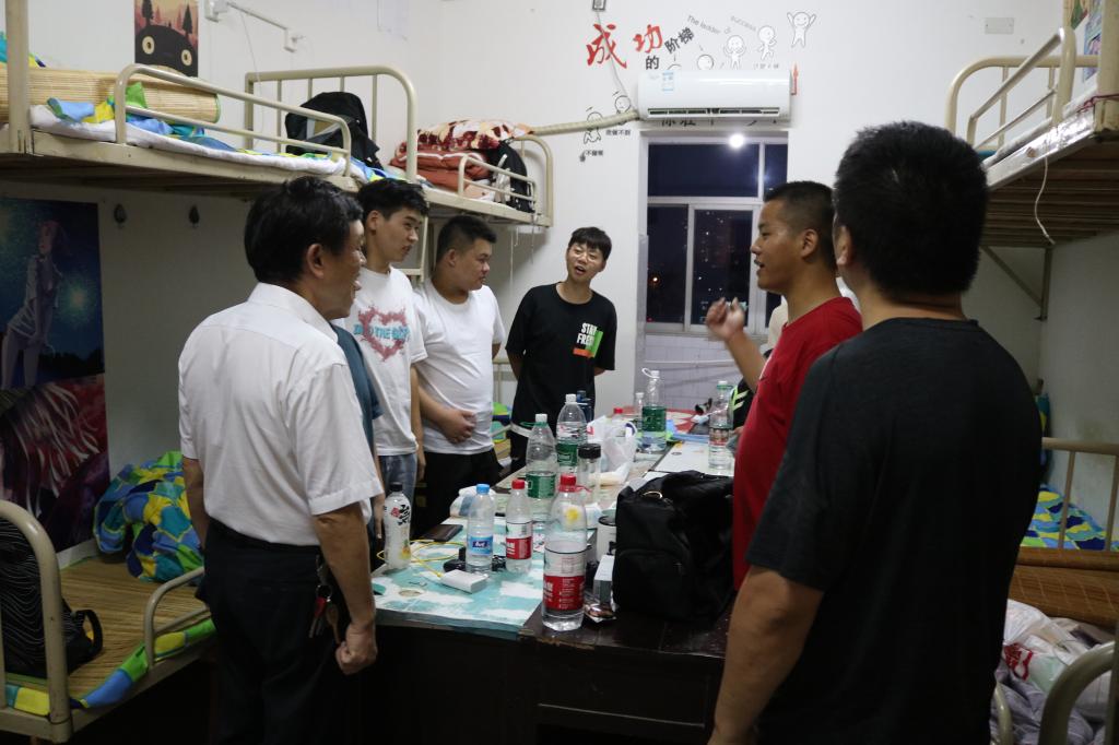 (图:迎新当晚信息学院领导老师及班助前往新生宿舍查寝)