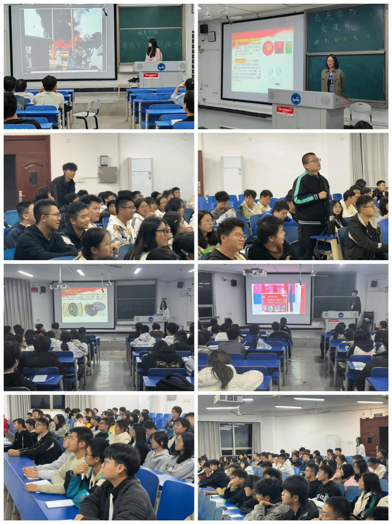 为了提高学生的安全意识,增强自我保护能力,信息学院文建部于11月10日-11月18日针对24级全体新生分6场开展了消防安全知识讲座,为生命安全筑牢坚实的 “防火墙”。