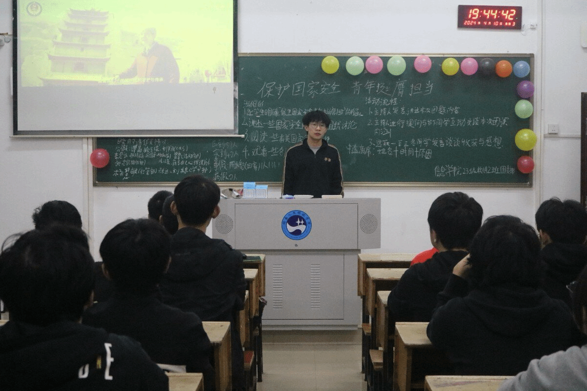 为引导学生深入学习贯彻习近平总书记安全观的重要论述和习近平总书记在湖南第一师范学院的重要讲话,并让青年一代了解国家安全相关法律法规,信息学院组织全院在校学生以班为单位,于2024年4月10日采取线上线下两种方式开展了“保护国家安全 青年挺膺担当”主题团课。