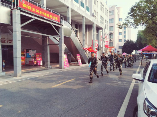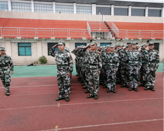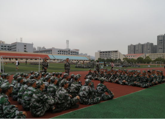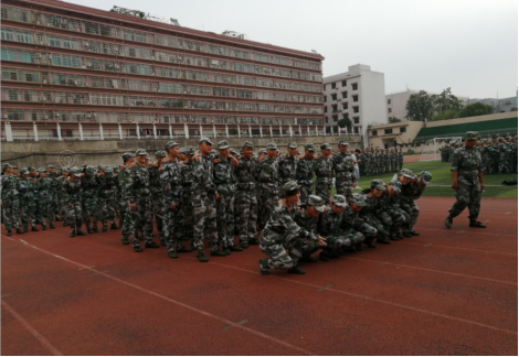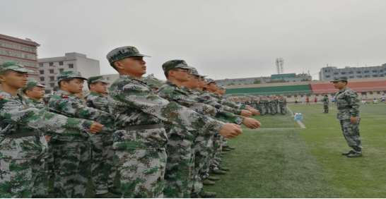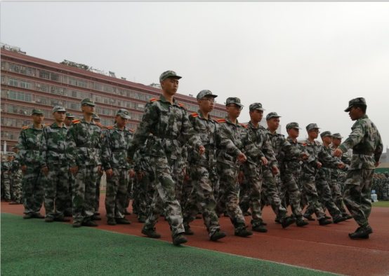 在激昂的国歌中,在校领导的激励下,在教官们响彻云霄的口号中,全体新生身着绿色军装,青春自此赋予了责任和使命,开始绘上了一笔绚丽的迷彩。