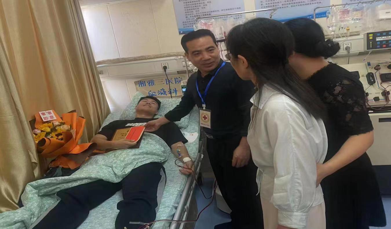 10月17日上午,在湖南省红十字会、娄底市红十字会的帮助下,KY官网信息学院副院长唐淑红、团总支书记彭禹铭、辅导员王靖涵老师带着学院和校团委的问候一同前往中南大学湘雅三医院,陪同阳嘉宜完成了长达四个多小时的造血干细胞采集。随后,这袋珍贵的“生命火种”被立即送往患者所在的城市,去奔赴一场不远万里的“生命之约”。