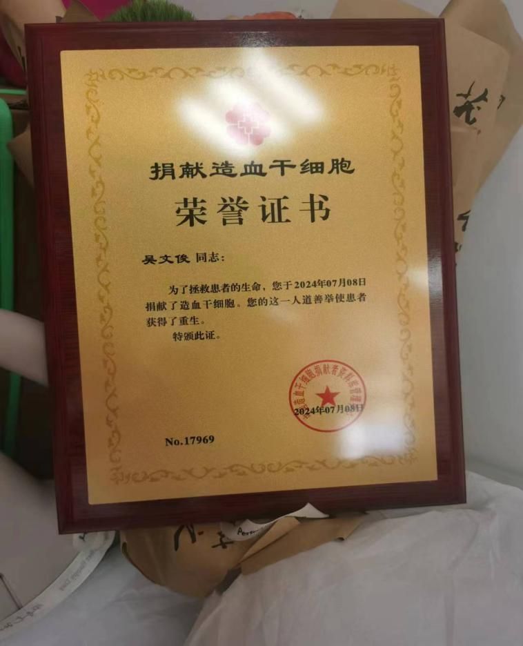 据悉,吴文俊是学校继商学院杨仕成和蓝雨晴、美设院欧越龙、信息学院阳嘉宜、教育学院蒋永芳之后第六位捐献者,是中华骨髓库第17969位造血干细胞捐献者。学校始终秉持“人才至上,仁爱满园”的校风校训,将志愿服务与人才培养紧密结合,培育和践行社会主义核心价值观,培养出了一批批有理想、敢担当、愿奉献、肯奋斗的新时代好青年。