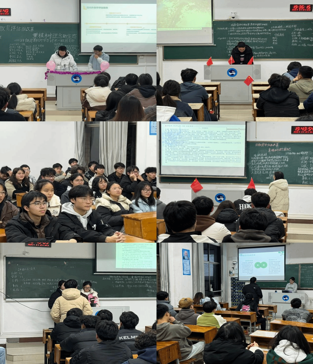 团课开场,各班主持人带领同学们精读《新一轮本科教育教学审核评估》文件,明晰评估方案意义与理念。随即,围绕《低碳生活 绿建未来》《改善生态环境,促进可持续发展》展开研讨,促使同学们将绿色理念融入日常,深化对 “两山” 理论的理解。最后,通过观看《保护环境从我做起》视频,点燃同学们投身生态文明建设的热情。