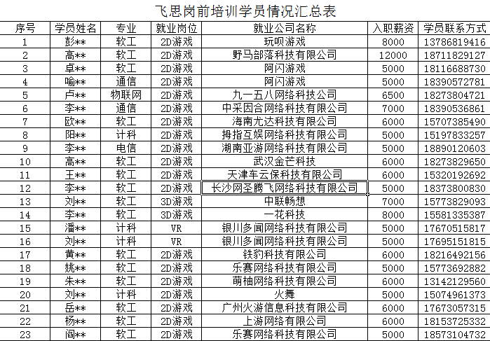 长沙飞智益思信息科技有限公司成立于2011年,主营业务为校企合作、课程置换、岗前实训。是一家面向IT行业高端技术型人才培养的公司,旨在巩固与提升计算机及相关专业大学生实操项目能力,达到高薪对口就业的目的。公司成立至今取得省内外多所高校的认可,并先后成为其定点实习基地;经过近几年的发展,飞思学子遍布全国各地,为国内数十家游戏研发企业解决了人才需求。