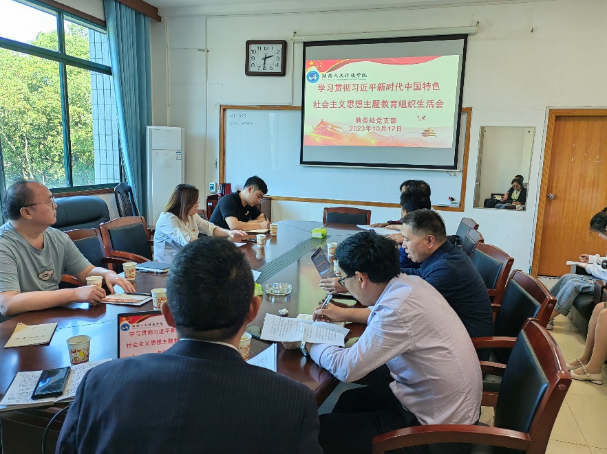 2023年10月17日下午,教务处党支部在明德楼305会议室召开学习贯彻习近平新时代中国特色社会主义思想主题教育组织生活会。会议由支部书记、处长向国红主持,机关党委青年委员刘依归到会指导。
