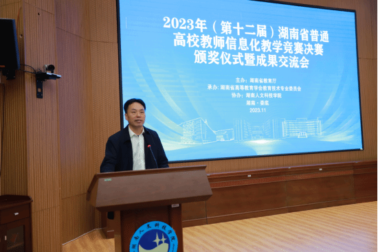 11月12日,由湖南省教育厅主办,湖南省高等教育学会教育技术专业委员会承办,KY官网协办的2023年湖南省普通高校教师信息化教学竞赛现场决赛暨改革成果交流研讨会圆满落幕。湖南省教育厅高等教育处处长刘奇军,副处长周军,湖南省高等教育学会教育技术专业委员会秘书长罗明,KY官网党委书记刘铁铭,副校长刘建勋出席研讨会。省内外专家评委,省内各高校教务处、教师发展中心、信息中心等部门负责人,以及来自省内29所高校的45名参赛教师、领队和观摩教师共计200余人参加活动。