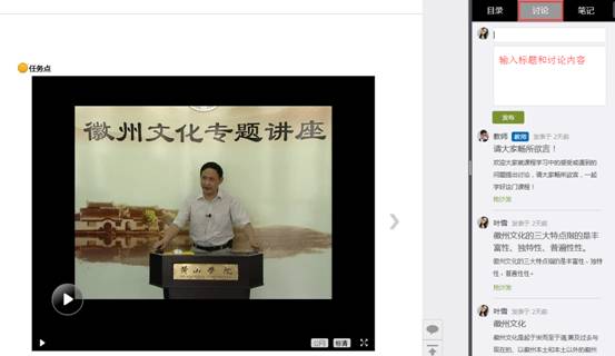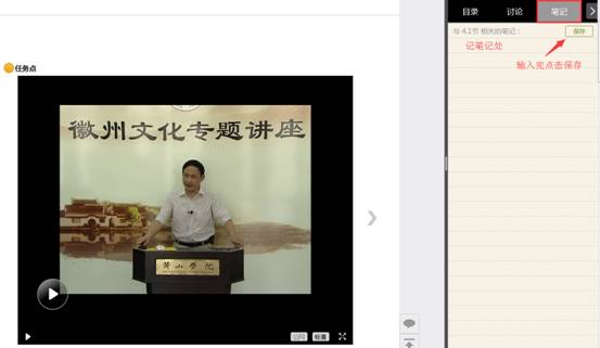 A、以徽州文化为例,点击章节知识点名称,即可进行课程学习,可以按照自己的学习进度进行课程的学习。学习进度在课程目录右侧显示。
