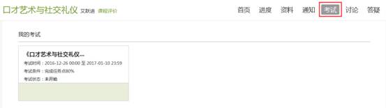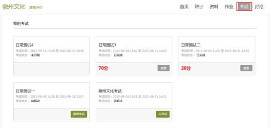 在课程空间内,点击导航栏的考试,进入考试界面,如图所示