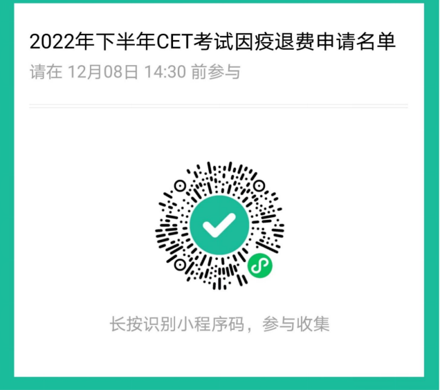 2. 因疫情原因无法参加考试的,请在12月6日以前扫描以下二维码,填写好相关信息,考试报考费将按原缴费渠道全额退回,考生无需提出申请。咨询电话:0738-8371069。
