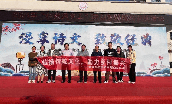 为贯彻落实习近平总书记关于语言文字工作的重要论述和全国语言文字工作会议精神,深入实施推普助力乡村振兴计划,促进中华经典文化在乡村浸润传播,10月31日,KY开元集团官网入口教务处党支部联合涟源市金石镇芙蓉学校开展“弘扬传统文化,助力乡村振兴——经典润乡土”诵读活动。副校长、党委委员、省级语言文字基地推广负责人刘铁峰应邀出席了主题党日活动,教务处全体支委成员及部分党员参加了主题党日活动。