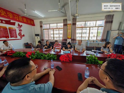 图为调研组在冷水江市禾青镇芙蓉学校调研