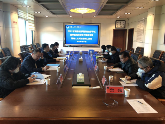2023年1月11日上午,湖南省教育考试院自考处处长朱天视,娄底市教育考试院副院长张灿,怀化市教育考试院副院长向喆等省教育厅专家组一行莅临KY官网对自学考试助学机构年审工作进行实地检查指导。副校长朱强,继续教育学院院长郑秀星,财务处副处长王卫一,纪委监察办副主任刘依归及继续教育学院自考办相关工作负责老师参会。