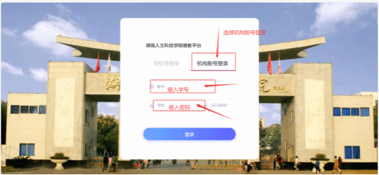 第二步选择机构账号登录,输入学号密码,密码忘记请联系教学点老师修改。