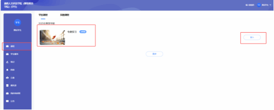 第一步左侧导航栏点击课程,找到专业实习课程,点击进入。