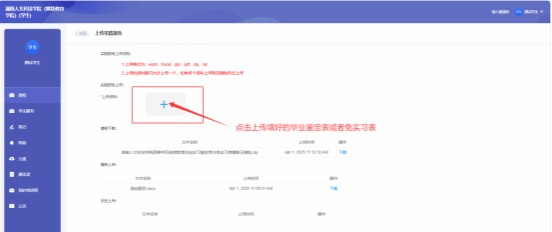 第四步点击上传填好的毕业鉴定表与免实习表
