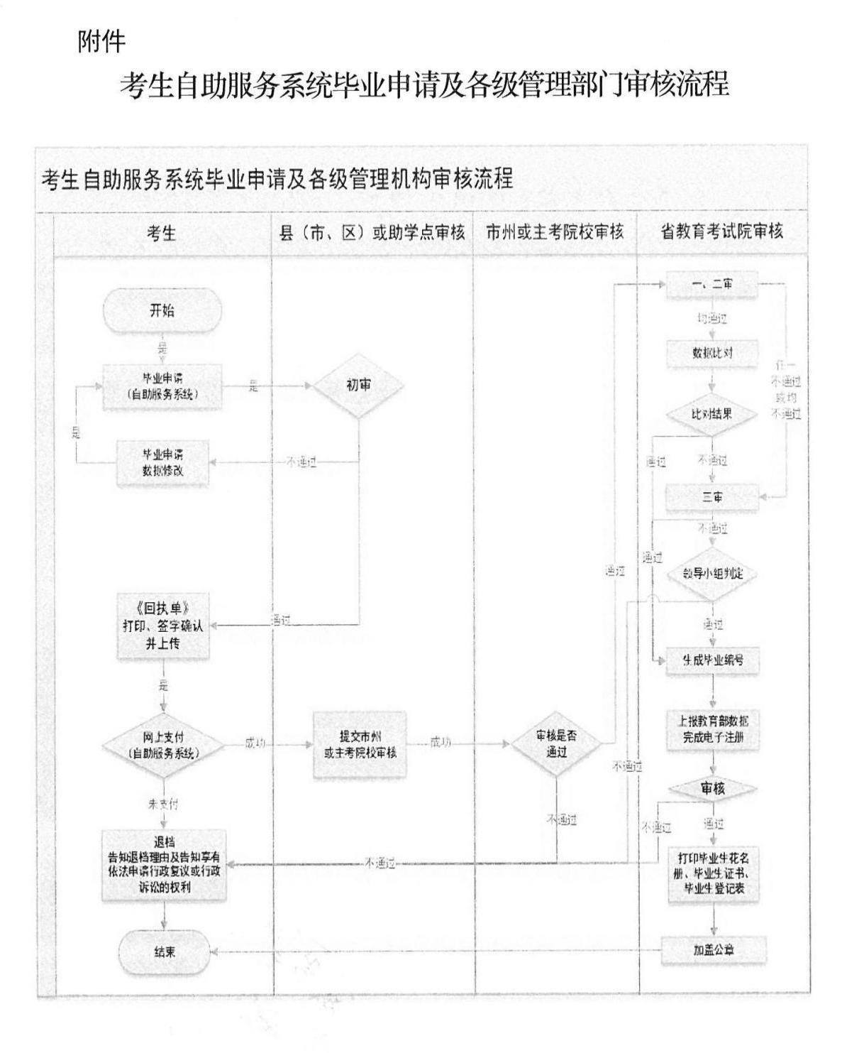 2.助学单位和各学院要严格按照省教育考试院和学校有关要求进行毕业资格条件审查,确保网上考生信息准确,档案材料齐全,操作流程规范,做到不漏审、错审任何考生。凡未在规定时间内网上申请毕业手续的,只能参加下一批次的毕业申报,当次一律不予补办。