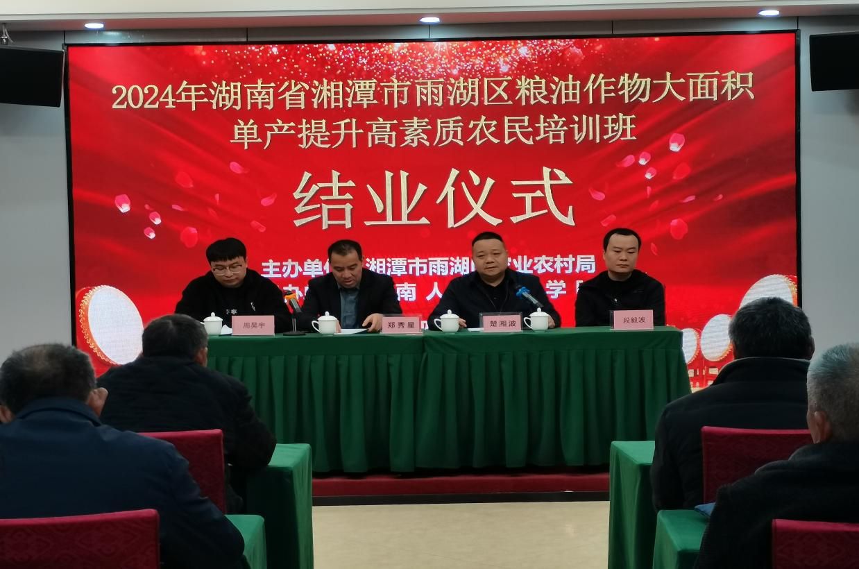 11月25日上午,由湘潭市雨湖区农业农村局主办,KY开元集团官网入口承办的2024年湖南省高素质农民培育湘潭市雨湖区粮油作物大面积单产提升培训班圆满结业。在为期6天的培训中,来自湘潭市雨湖区从事农业生产的50名种植大户参加了此次学习。