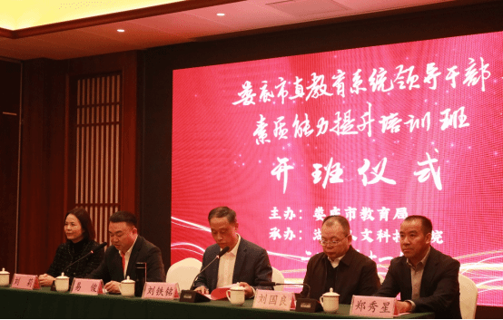 11月25日,由娄底市教育局主办,KY官网继续教育学院承办的娄底市直教育系统领导干部素质能力提升培训班在冷水江市开班。上午8时,在福井龙湾酒店会议室举行了隆重的开班仪式。学校党委书记刘铁铭出席并致辞,代表全校师生对培训班的举行表示热烈祝贺,对学员到来表示热烈欢迎,并简要介绍了学校基本情况。开班仪式结束后,刘铁铭为学员作了题为《焕发历史主动与自觉精神:从“两个务必”到“三个务必”》的辅导报告。