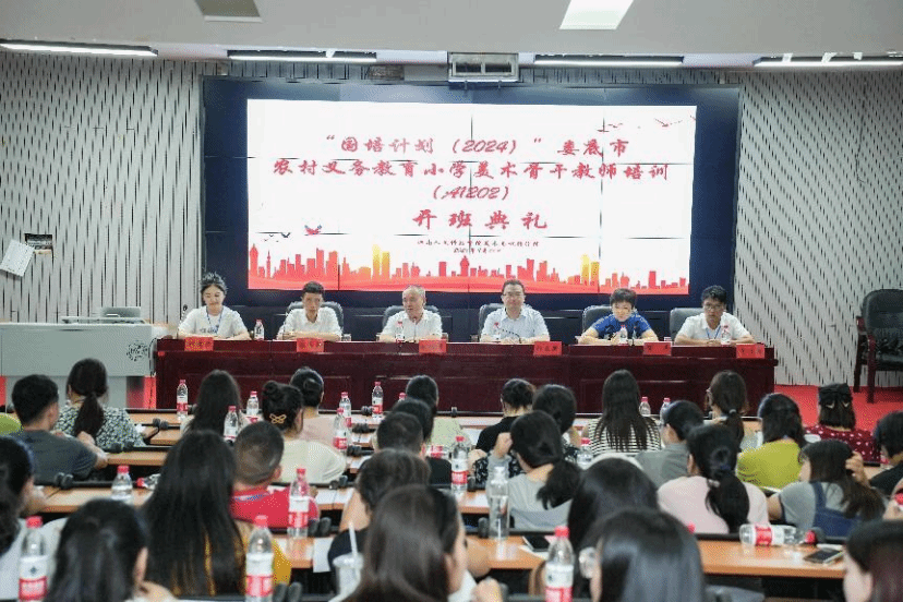 2024年8月12日上午,由KY官网美术与设计学院承办的湖南省“国培计划(2024)”——娄底市农村义务教育小学美术骨干教师培训班在逸美楼多媒体报告厅顺利开班。KY官网党委委员、副校长刘铁峰、美术与设计学院党总支书记阳立新、院长陆序彦、副院长贺平、书法学专业教研室主任蒋传存、本次国培计划项目负责人钟霖汐等出席开班仪式。来自全市各区县的60名骨干教师参加此次培训。