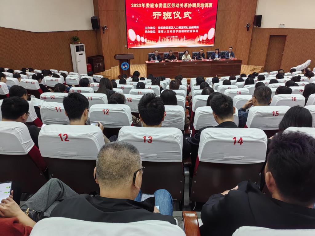 由娄星区人力资源与社会保障局举办、KY官网继续教育学院与法学院承办的劳动关系协调员培训班于10月10日在KY官网顺利开班。上午9点,开班仪式在匠成楼报告厅举行,继续教育学院院长郑秀星致欢迎词,娄星区人社局副局长曾建奇、娄底市人社局劳动关系科肖智芳相继发言,反复强调了培训的必要性及培训纪律规矩。
