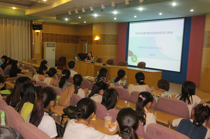 2015年6月18日上午8:30——10:30,湖南师范大学博士生导师杨莉君教授应邀前来KY官网“人文科技大讲坛”,为教育科学系学前教育专业师生和校内外相关专业人士做学术讲座,主讲主题为“我国学前教师教育面临的机遇与挑战”。杨莉君教授结合我国学前教育事业发展的趋势和实际情况,系统讲解了当前及今后我国学前教育专业师资的专业任职资格及专业素养要求、当前学前教师教育存在的问题、面临的机遇与挑战。杨莉君教授的讲座高屋建瓴、联系实际、深入浅出,并详尽回答了部分师生的提问,受到与会听众的欢迎。