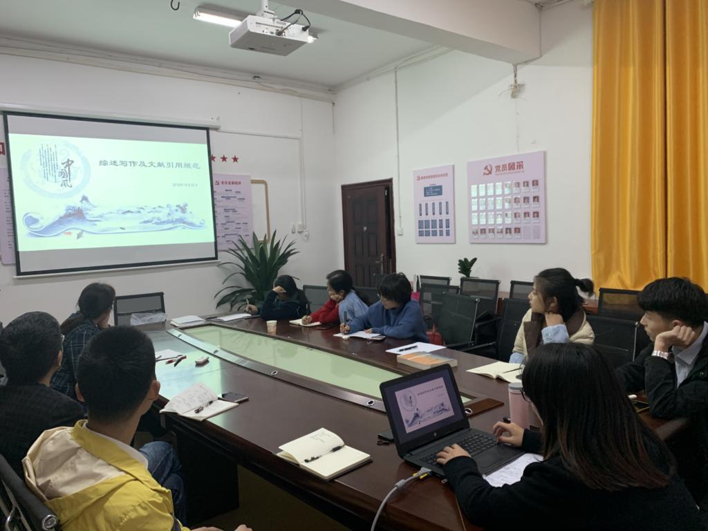 黎任水老师分享的研究生科研能力培养模式主要有三点:一是进入师门的科研基本功训练,如综述写作训练和spss软件操作等;二是进行分组管理,形成课题组;三是理论与实践的结合,做科研的同时要进学校进社区。综述写作规范分享中强调写文献综述不仅要有"综"还要有“述”,不要堆砌文献,要进行总结概括,要有自己观点,同时要注意参考文献的规范性。与会老师们就这两个部分结合学院现状和科研情况进行了热烈讨论。
