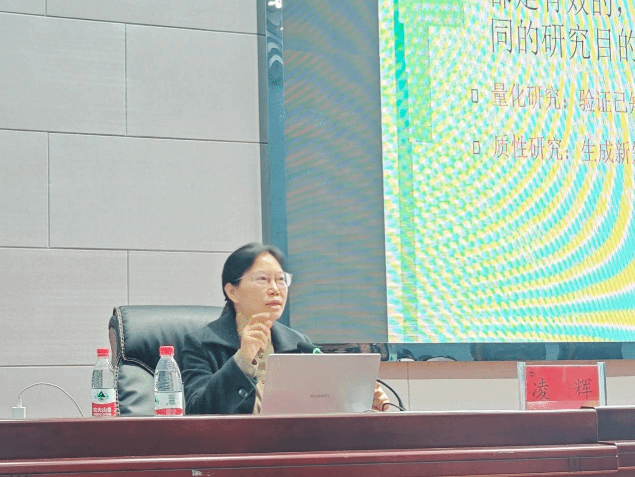 凌辉教授以“量化和质性研究的超越——混合方法研究设计”为题,首先回顾了中外质性研究的发展历程,指出这种研究方法既古老广泛,又行之有效。他详细解读了现阶段质性研究的具体方法,并深入分析了量化研究与质性研究的混合方法,强调研究方法应根据研究目的灵活选择,无高低贵贱之分。接着,她通过课题组的一项混合方法研究实例,展示了如何运用这种方法在高水平期刊上发表成果的可行性。最后,她为本科生提供了实用的建议,涵盖文献阅读、选题、研究计划的制定、论文撰写与发表等,帮助学生顺利展开学术研究。讲座结束后,师生进行了热烈的讨论。