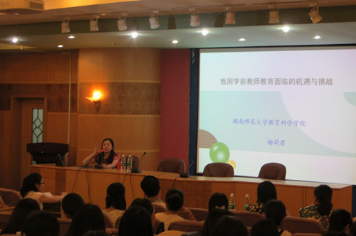 2015年6月18日上午8:30——10:30,湖南师范大学博士生导师杨莉君教授应邀前来KY官网“人文科技大讲坛”,为教育科学系学前教育专业师生和校内外相关专业人士做学术讲座,主讲主题为“我国学前教师教育面临的机遇与挑战”。杨莉君教授结合我国学前教育事业发展的趋势和实际情况,系统讲解了当前及今后我国学前教育专业师资的专业任职资格及专业素养要求、当前学前教师教育存在的问题、面临的机遇与挑战。杨莉君教授的讲座高屋建瓴、联系实际、深入浅出,并详尽回答了部分师生的提问,受到与会听众的欢迎。