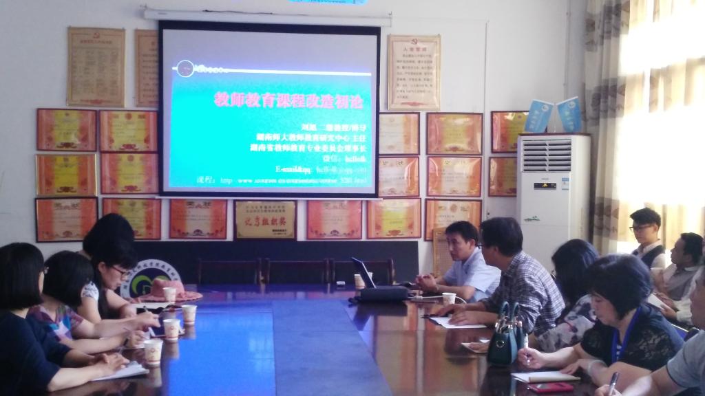 2017年5月18日下午3:00——5:50,湖南省教师教育专业委员会理事长、湖南师范大学博士导师、湘江学者刘旭教授,应邀来KY官网在教育学院甘淑楼会议室做题为“教师教育课程改造初论”的学术讲座。来自教育学院、学校各职能部门、兄弟学院的领导老师30余人参加了讲座。讲座由教育学院院长刘超良教授主持。