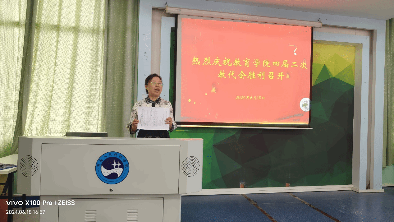 6月18日下午,教育学院在甘澍楼601召开“四届二次”教代会。会议由党总支书记陈功平主持,党总支副书记、院长蒋冰清、党总支副书记周卫军、副院长李国强,全体教职工、工会会员参加会议。