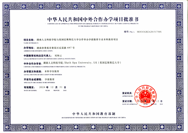 秉持培养卓越学前教育人才的理念,聚合中英两校优质教师和教育资源,进行深度合作,形成“五协同”的办学机制,接受教育部、湖南省、中英双方教育质量管理部门的全程监管,确保教育高质量。巴斯斯巴大学的创意文化引进项目,学生创新创业成果突出,已完成3项国家级项目,8项省级项目,以及校级项目30项。