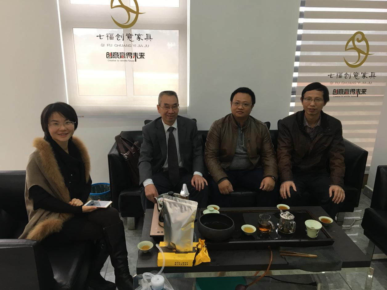 2017年11月15日,教育学院党总支申忠明书记、徐建东副书记、李佳维老师一行到长沙七福创意家具有限公司考察调研大学生就业实习基地。