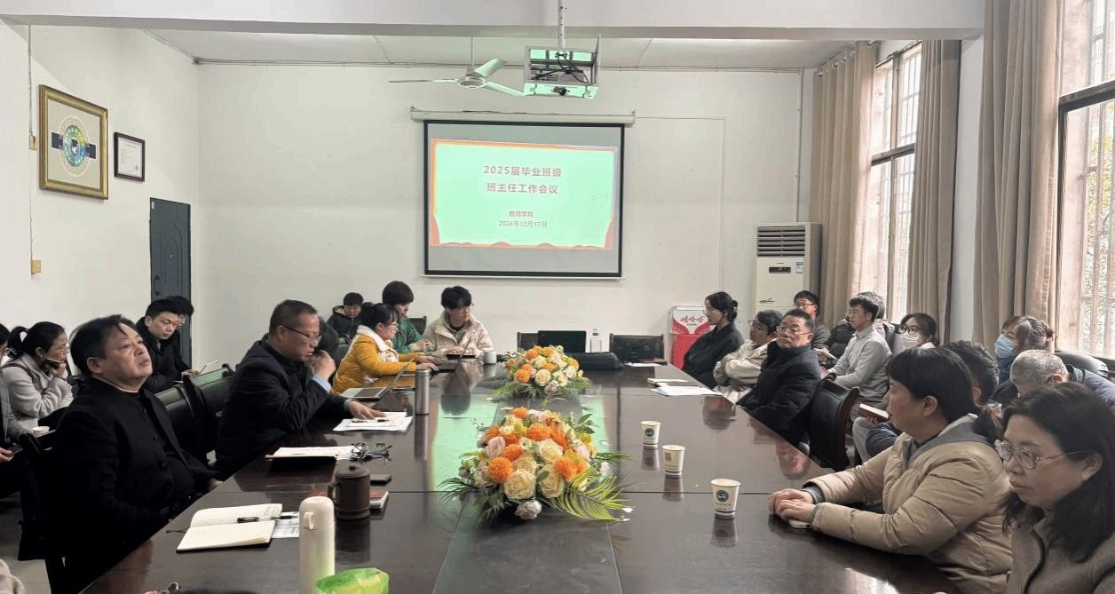 12月17日下午,教育学院在甘澍楼304召开2025届毕业年级班主任工作会议。党总支书记陈功平、毕业年级班主任、全体辅导员参加会议,学工办主任李佳维主持会议。