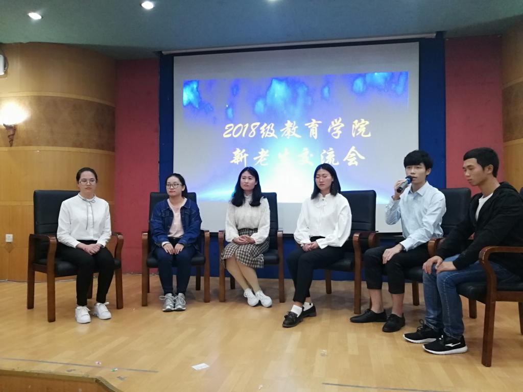 10月29日晚7:30,教育学院新老生交流会在养根楼报告厅隆重举行。教育学院党总支副书记徐建东、 辅导员、2018级各班班主任及全体大一新生参加本次活动。