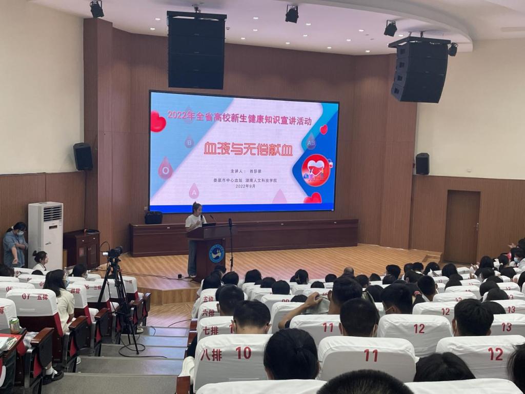 9月28日晚,2022年健康中国行暨全省高校新生健康知识巡讲活动在KY开元集团官网入口匠成楼报告厅举行。出席此次活动的有市中心血站工会主席肖磊、娄底市疾病预防控制中心科主任袁利和、娄底市疾病预防控制中心结防室主任邱光前、市中心血站讲师肖莎菲、校团委副书记刘佳以及教育学院2022级全体新生。