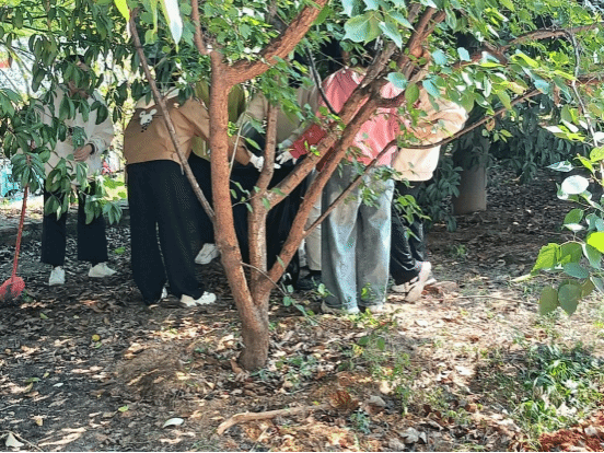 九月初秋时节落叶遍布林荫小道与花坛加大了清扫工作量。在闷热的午后工作更显繁重同学们仍然有序分工热情高涨,认真清扫,不放过角落垃圾。楼前台阶到园中草坪,到处都能看到同学们辛勤投入劳动的身影,经过同学们的辛勤劳作雅韵楼前的环境也变得更加干净舒适。最后,同学们自觉将劳动工具有序放回原处并合影留念,本次“守望花田”活动也落下帷幕。