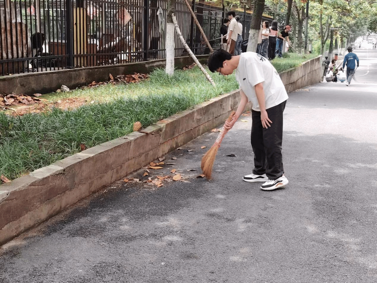 天气渐热,同学们的劳动热情也不断高涨。各班班长和劳动委员统一分配劳动任务后,同学们根据安排开始打扫花田。同学们各显其能,积极参与。有的用手套拾起花坛中的落叶,有的用夹子清理高处的白色垃圾,有的用扫把仔细清扫各个角落的落叶。经过一个多小时的不懈努力,雅韵楼前坪的卫生环境显著改善。劳动过程中,教育学院团总支学生会督察部干事们认真履行监督职责,并用手机记录同学们最美的劳动身影。