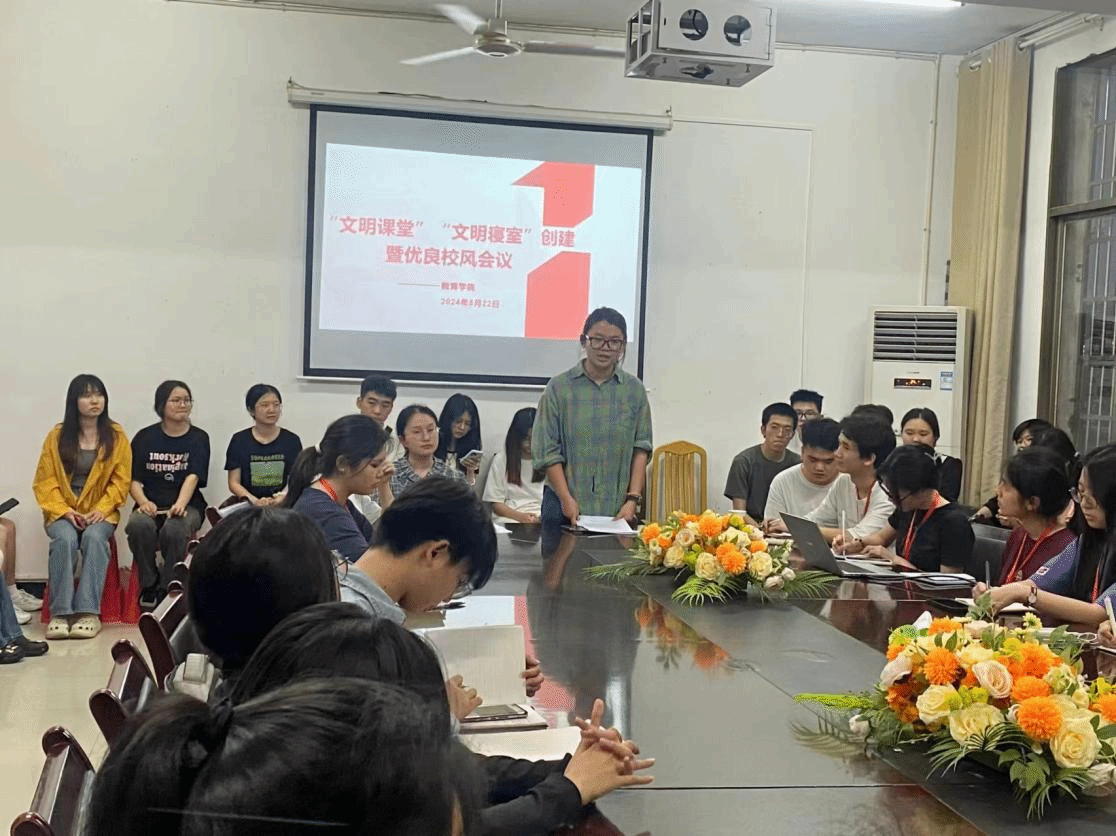 5月22日晚,教育学院在甘澍楼304开展了“文明课堂”“文明寝室”创建暨优良校风养成会议。辅导员文思婕、肖阳以及21级、22级、23级各班班长、学习委员及团学会部分学生干部参加了本次会议。