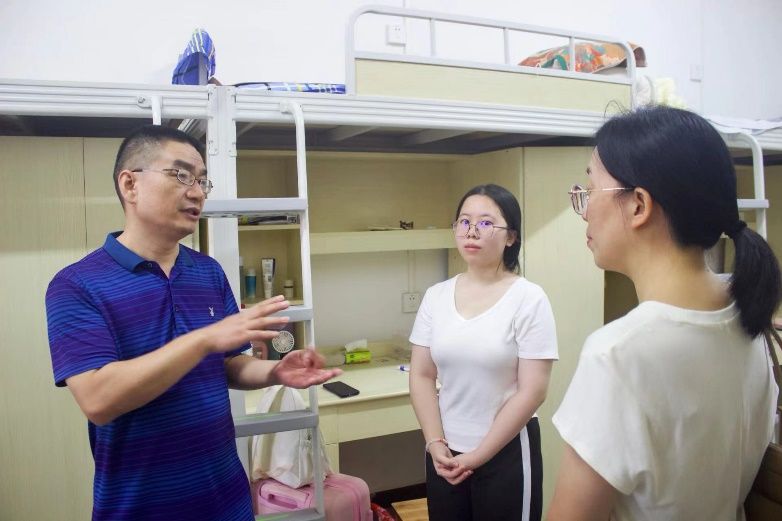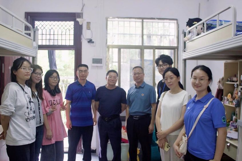 在学生第五栋新生宿舍楼,每到一处宿舍,院领导都亲切地与新生们交谈,询问他们是否适应新环境,对学校的饮食、住宿条件是否满意,并检查宿舍的安全卫生状况,叮嘱同学们要注意个人卫生,保持宿舍整洁,共同营造一个安全、健康、和谐的学习生活环境。同时也勉励新生们要珍惜大学时光,强调要注重身心健康,同学之间要相互关爱,也要注意人身安全和财产安全,谨防诈骗。新生们纷纷表示,学院提供的住宿条件优越,校园环境美丽,老师们和学长学姐的热情帮助让他们感受到了家的温暖。
