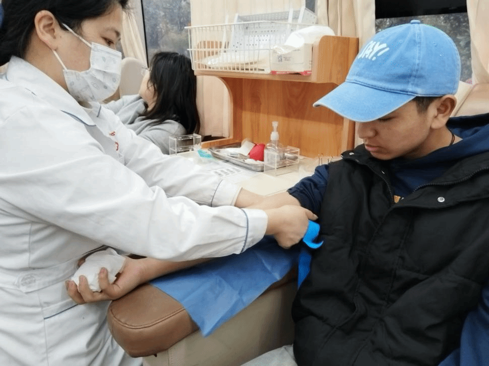 (志愿者进行献血)