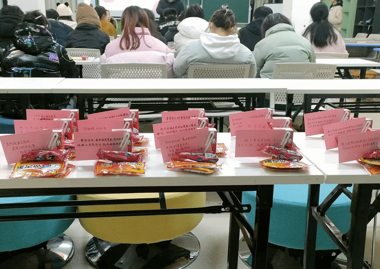 2020级考研的学子们有序入场,并收到了来自老师们精心准备的小礼物——象征幸运的旺仔牛奶以及提供温暖的暖宝宝,希望学子们带着这份祝福,实现自己的考研理想。