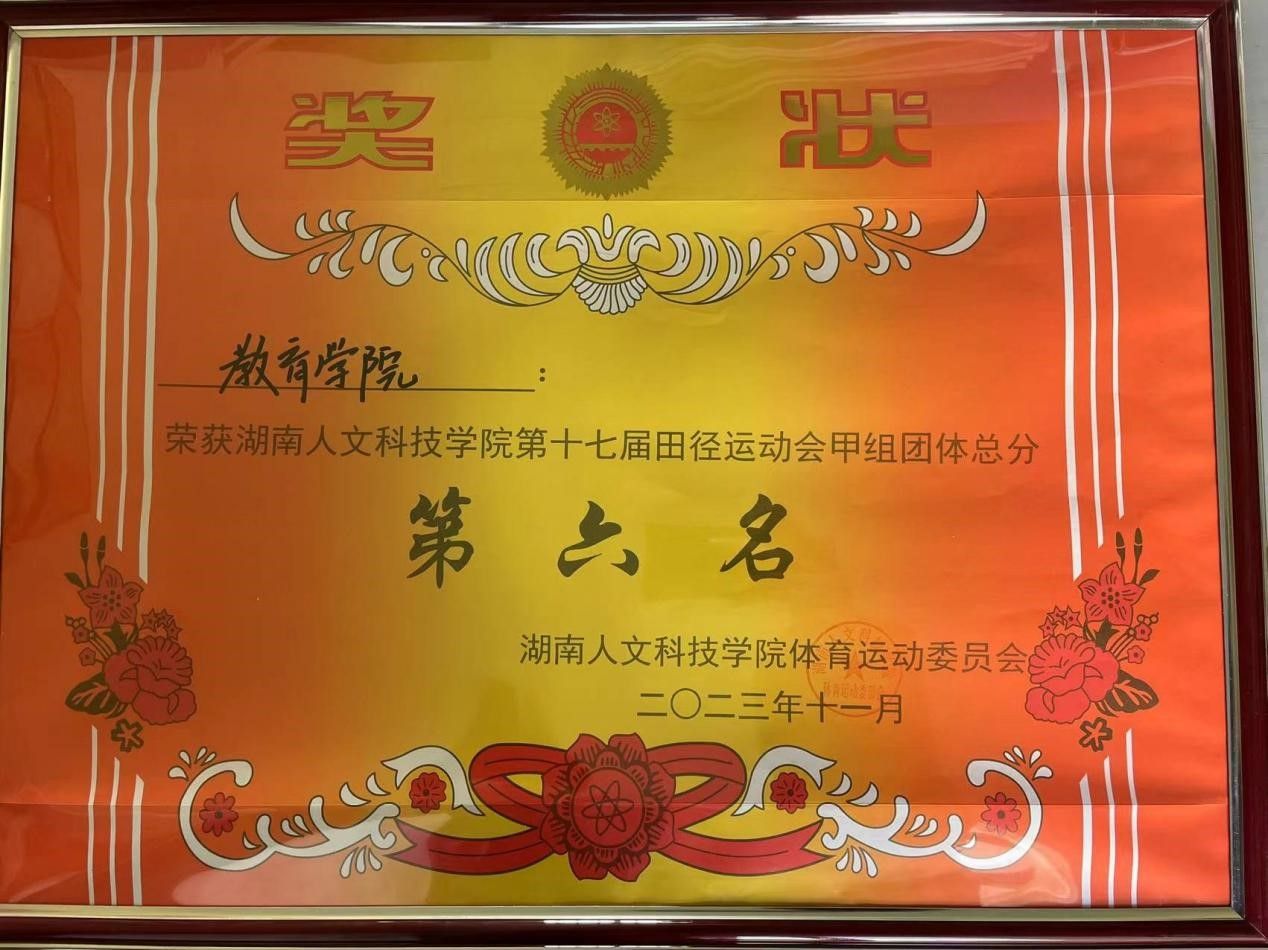 通过顽强拼搏和不懈努力,学院运动员汪思吾、罗珊珊、卓依轩、赵国良、周文倩等人荣获了小垒球、女子1500米第一名等多项单项荣誉,在接力、跳绳等团体项目中也取得了优异成绩。学院获得甲组团体排名第六名及体育道德风尚奖。