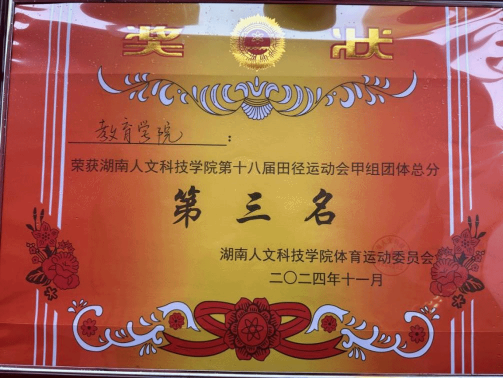 通过顽强拼搏和不懈努力,教育学院运动员汪思吾、夏洪锦、方莹、徐子淇等人荣获小垒球、跳远等多项单项荣誉。在接力、集体跳绳等团体项目中教育学院也取得了优异的成绩。最终教育学院获得甲组团体第三名和体育道德风尚奖。