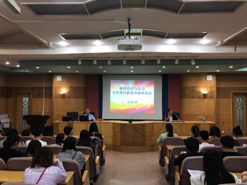 刘校长从“认清当前中美贸易战的实质”出发,详细分析了中国当前面临的复杂国际形势;讲述了我国改革开放四十年来的伟大成就,希望大家增强民族自豪感,提高思想认识,坚定理想信念;号召大学生们牢记时代担当和历史责任,不断提高自身的素质,主动承担建设祖国、维护祖国稳定的重任,为实现民族复兴添砖加瓦。