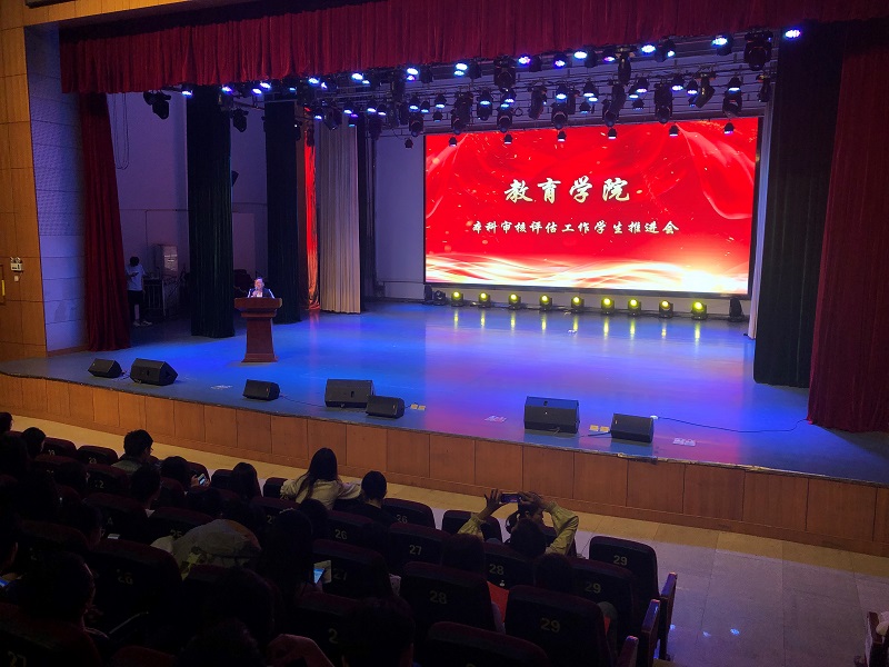 2019年5月19日晚,KY官网在逸夫楼音乐厅举行了“教育学院本科审核评估工作学生推进会”。KY官网领导班子全体成员、辅导员、班主任及全体学生参加此次会议。
