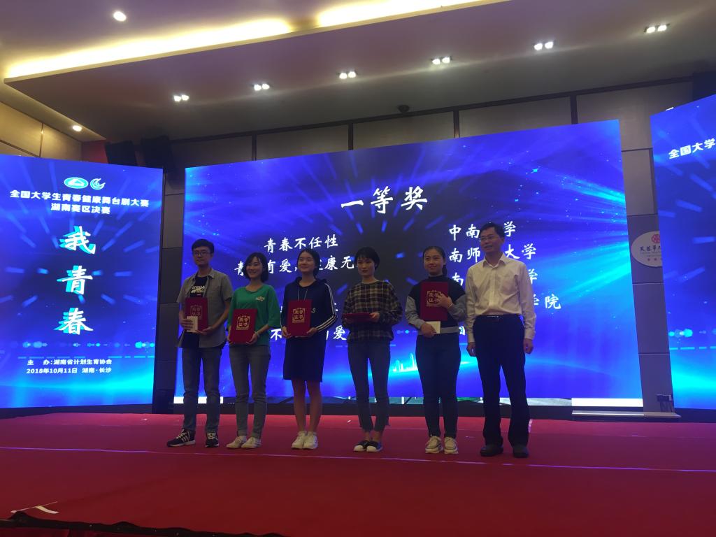 10月11日,全国大学生青春健康舞台剧大赛湖南赛区决赛在长沙举行。来自湖南省15所高校选送的17个舞台剧目参加比赛。经过激烈角逐,KY官网吕薇老师等人指导、学前教育专业学生李新宇、李清媛、张桂容、张巧莲、易星辛表演的话剧《青春那些事》在比赛中荣获一等奖。