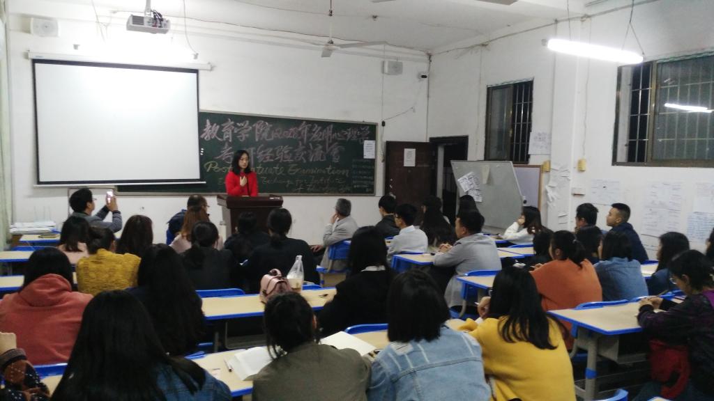 近日,教育学院各专业教研室先后召开2018年各专业学生考研经验交流会,学院领导、相关专业教研室主任和老师到场,组织各专业2014级考研成功录取的毕业生为低年级(主要是2015级学生)分享考研经验。考研录取学生汤子腾、兰勇龙、尹昱靓、谭甘露等就考研准备、学习方法、考试应对方法与技巧、考研与实习、毕业论文的关系、师生交流等方面分享了自己的心得体会并一一解答同学们的疑问。相关领导和老师就学生准确处理好考研与职业生涯规划的关系、合理定位和明确考研方向与层次等方面的问题为学生做了指导。