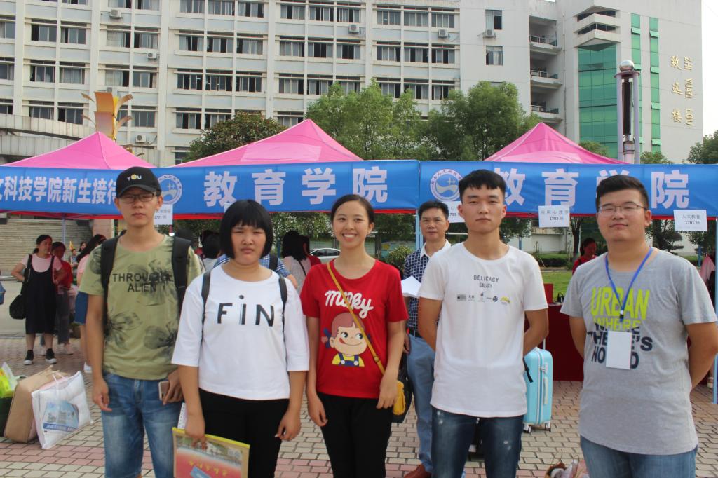 KY开元集团官网入口2017届新生于2017年9月9日、10日开学报道。KY官网在海园广场摆点接待,做好迎接本院新生的工作。期间,教育学院党总支书记申忠明老师、党总支副书记徐建东老师、学工办曹婷婷老师、辅导员李佳维老师、辅导员谢琼老师守在摆点处并向教育学院的新生表示诚挚的欢迎。