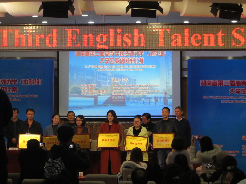11月26至27日,湖南省第三届高等学校涉外办学(本科组)大学生英语风采赛在湖南商学院举行,赛事由湖南省教育厅举办、湖南商学院承办、雅思考试主办方英国文化教育协会协办。湖南省教育厅党组成员王玉清出席比赛。来自中南大学、湘潭大学、长沙理工大学、湖南商学院等16所高校的17支代表队,共聚一堂,切磋较量。KY官网与英国巴斯斯巴大学合作开办的学前教育专业中英合作本科教育项目代表队首次参加本项竞赛(3位正式选手、5位助演)。